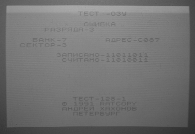 Оставил тест на долго, при старте была шахмтка - сейчас квадрат черныйЮ фф видимо залило, похоже до 3 шага таки дошел тест. Добавлено через 23 минуты Попробовал зышить обычный 48ой бейсик, 1ую ногу отогнул, выставил в 0. Черный квадрат, тонкие полосы сброса и стоит черный экран. Один раз таки выпал в белый - но заветной надписи не появилось. Добавлено через 3 часа 59 минут капец какойто записал сейчас обратно вот этот тест TEST128 Включил. Тест идет сразу с пилота. Побежали полоски по квадрату, какбы закрашивая его инверсией. Сейчас идут тонкие полоски, черные. Подожду, посмотрим что будет дальше. Добавлено через 4 часа 2 минуты хм... пошел белой точкий рисовать. Толи криво тест зашил первый раз, толи одно и двух. |