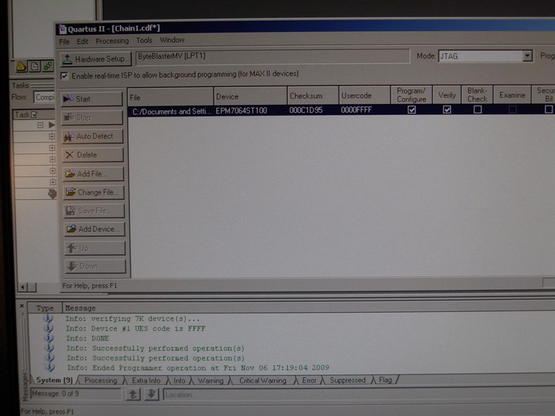 Пока есть время, продолжаем. Теперь целесообразно прошить установленную на плате 7064, которая представляет собой программируемую синхросхему для Спринтера. Для программации этой микросхемы используем программатор и ПО, упомянутое в посте №6 этой темы. Последовательность такова: