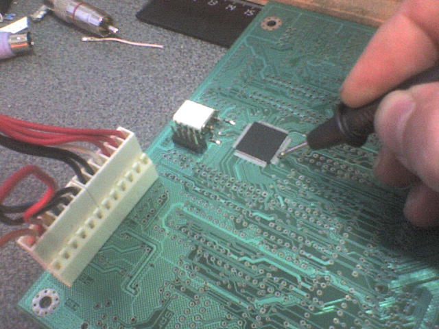 Берем вот эти файлы, распечатываем. Два варианта SP-2000 и SP-2003s (просто 2003 немного отличается установкой микросхем видео, они установлены рядом а не со сдвигом). Attachment 14841 Далее берем плату, протираем ее спиртом для очистки после транспортировки и обезжиривания. Внимательно осматриваем на предмет наличия залипух и коротышей, подозрительные места прозваниваем. Во избежание вопросов по поводу незначительного изгиба некоторых плат, поясняю-это допускается ТУ на производство. Предлагается уже опробованная последовательность монтажа элементов. Начинаем с установки процессора. На схеме указан тип Z84C1516PSC, поиски в интернете ничего не дали, поэтому был выбран Z84C1516FSG, при этом,используя даташит, нужно обратить внимание на тип его корпуса. Шаг выводов у него 1.0 самое то для тренировки в пайке. При программировании 7064 он нам не помешает. Выполнено, потренировались, получилось. Проверяем качество на просвет и если кто не уверен, прозвонкой. Я делал все это так: жидкую канифоль наливал в крышку от пластиковой бутылки и оставлял, чтобы она загустела. Далее этой загустевшей мазал посадочное место, ставил микросхему, и используя маску с линзами очень точно выставлял микросхему. Иногда повторял процедуру несколько раз. Нервы здесь не нужны, нужна правильная установка. После этого аккуратно прижимаем микросхему пальцем и прихватываем крайние выводы. При этом паяльником, тем, который "игла" проводим сверху вывода, до окончания паяемой дорожки. Здесь нужно соизмерять усилия, если давить сильно, дорожка под действием температуры может отслоиться. При необходимости наносим канифоль поверх выводов. Допаиваем не торопясь все остальные вывода, проверяем на просвет, прозваниваем. Запаиваем разъем программации. Перед программацией 7064 напаиваем две блокировочные емкости 01-1,0 mF, расположенные под этой микросхемой с обратной стороны платы. |