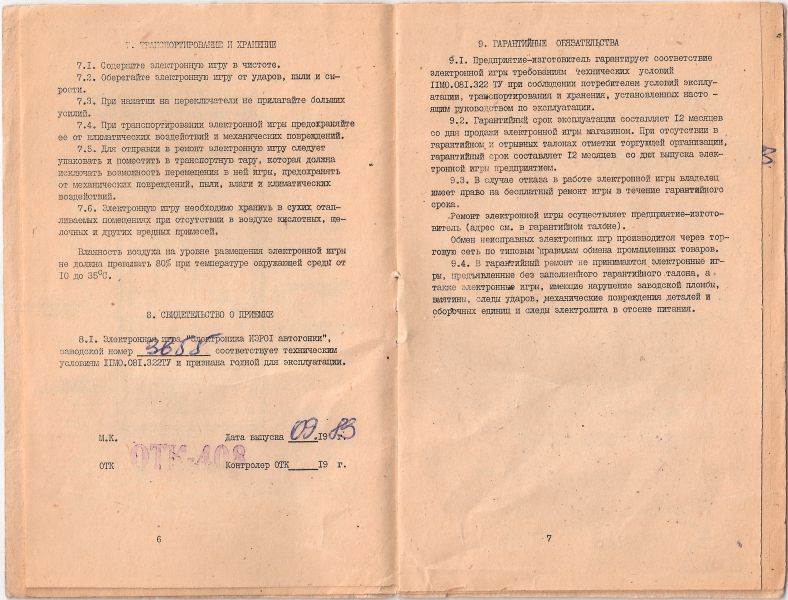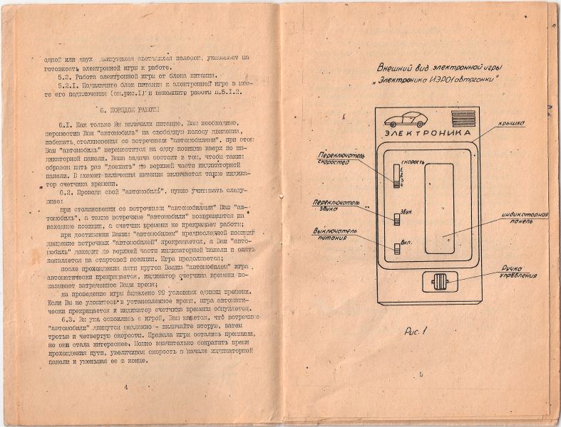 Электроника ИЭР-01 автогонки изготовлен в сентябре 1983 года Серийный номер 3655 Внутри К145ИК512П. упоминается здесь http://www.155la3.ru/k145_2.htm#k145ik508 http://zx.pk.ru/picture.php?albumid=74&pictureid=580 http://zx.pk.ru/picture.php?albumid=74&pictureid=604 Full HD дисплей 9х3 пикселей.:D http://zx.pk.ru/picture.php?albumid=74&pictureid=583 http://zx.pk.ru/picture.php?albumid=74&pictureid=584 Мануал Attachment 31763Attachment 31764Attachment 31765Attachment 31766Attachment 31767 Мануал в более высоком разрешении. Электроника ИЭР-01 автогонки.zip К сожалению большей информацией не располагаю.:| Если кому интересно могу сделать фотки внутренностей. |