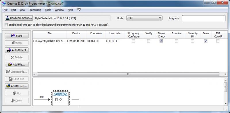 подскажите нубу,тоесть мне -убил часа 2 на чтение нета и этого топика -но так и не понял как стереть плис epm3032atc44 ,что бы она была чистая и ноги в ZZZZ ???