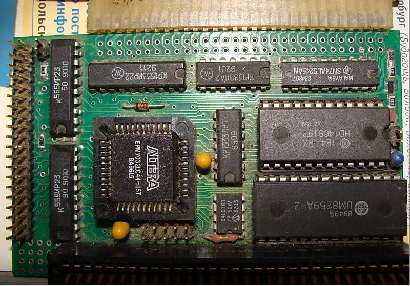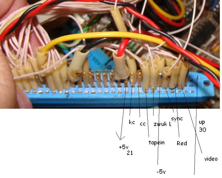 Я ради интереса попробовал узнать почему и подключив к этим ногам землю увидел матрас, тоесть что то туда идет, но не земля. Поэтому: ![]() Я покряхтел и подключил землю с материнской платы, насколько мое образование позволяет понять ее можно брать с серебристого края платы, я так и сделал. Далее пересчитал все поновой. Спаял как на АТМ для удобства, не смотря на то, что провод еще и отдельный изготовил для Scorpa. Еще все провода подписал и вывел +5 вольт на пал кодер. Когда куплю его сделаю через него для интереса. Вышло так: Земля с платы - 2 нога штырька синий 29 нога скорпа - 5 нога штырька зеленый 28 нога скорпа - 4 нога штырька красный 28 задняя нога скорпа - 3 нога штыртка синхра 27 задняя нога скорпа - 1 нога штырька Включил и все прекрасно работает !!! Немного вначале глючит с холодного синхра, но потом после нагрева деталей все работает четко. Звук играет прекрасно без шума и глюков, оцифровки играет прекрасно (очень класно и чисто играет между прочим !!!). Два дисковода работают прекрасно. Читают по крайней мере четко. Вот радостная фотка в приложении: