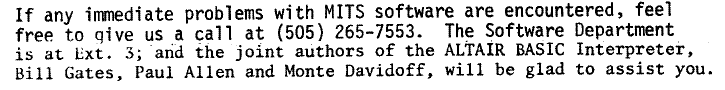 Читал тут описание Altair Basic и наткнулся на следующий абзац (обратите внимание на фамилии).... прям за душу берет.