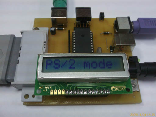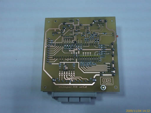 В качестве базового манипулятора выбран 14-кнопочный цифровой игровой контроллер от Sony Playstation (в дальнейшем буду называть его joypad) как достаточно удобный и относительно недорогой. Аналоговые контроллеры DualShock поддерживаются также. На данный момент у адаптера UniJoypad следующие возможности: - управление: MCU ATmega32, внешний супервизор питания, возможность обновления firmware через USB; - питание: 3 варианта подключения питания (внешний БП +7,5...12В, USB, +5В); - индикация: светодиоды Power LED и Service LED, текстовый LCD-индикатор 1x10 (длительность подсветки управляется программно AVR); - порты: joypad, PS/2, USB и два универсальных miniDIN; Адаптер работает в следующих режимах: - Test. В этом режиме определяется тип joypad и можно протестировать все кнопки. При первичном подключении используется по умолчанию. - PS/2. Адаптер подключается к интерфейсу PS/2 PC/ZX и транслирует в PS/2 нажатия клавиш подключенной к адаптеру клавиатуры (работают оба направления хост<->клава), кнопок joypad. Кроме этого есть возможность транслировать еще и нажатия кнопок обычного контактного ZX-джойстика. В подрежиме PS/2 setup, можно отрегулировать чувствительность joypad, а также запрограммировать любую кнопку joypad (кроме двух сервисных) на нажатие любой клавиши клавиатуры. Первая сервисная кнопка позволяет выбрать один из двух сетов, т.е. наборов запрограммированных кнопок, итого получаем 24 кнопки, эмулирующих нажатия клавиатуры! Во время игры просто переключаемся между двумя сетами на ходу. Вторая сервисная кнопка используется для autofire (непрерывная стрельба), эту функцию тоже можно закрепить за любой кнопкой. - USB. Здесь все просто, UniJoypad подключается к USB PC и через HID-драйвер передает нажатия кнопок joypad. - ZX. В данном случае адаптер подключается к порту джойстика ZX и транслирует нажатия joypad. В ZX setup можно выбрать активный логический уровень сигнала нажатия (low/high). В этом режиме эмулируются стандартные кнопки XY-направлений и fire. Отдельная кнопка включает/выключает функцию autofire. Две кнопки задействованы для функции burst fire, т.е. стрельба короткими очередями (отличаются длиной очереди). Четыре combo кнопки, которые эмулируют нажатия пары кнопок XY-направлений (например, любители Dizzy эту фишку оценят , жмем combo - диззик, например, кувыркается вперед/вверх). Ну и наконец моя последняя кнопочная инновация , кнопка superkey, эмулирующая до 16-ти последовательно нажатых заранее запрограммированных кнопок. Superkey можно программировать на ходу. Добавлена возможность эмулировать нажатия fire2 и fire3. Есть специальная версия UniJoypad для Phoenix. Возможности: - управление: MCU ATmega32, возможность обновления firmware через USB; - питание: +5В, разъем компьютерного БП; - индикация: светодиоды USB Power LED и Service LED, текстовый LCD-индикатор 1x16 (длительность подсветки управляется программно AVR); - порты: joypad (miniDIN), PS/2, USB; используются почти все режимы UniJoypad, отдельно добавлены для Phoenix: возможность работы с часами реального времени и встроенный USB-программатор контроллера мультикарты.