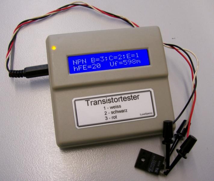 который позволяет тестировать биполярные и полевые транзисторы, диоды, тиристоры, семисторы, конденсаторы, резюки и вроде ещё кой чего. Весь кайф в том, что он также определяет распиновку тестируемой детали, кой какие параметры диодов и транзисторов и т.д. Короче всё сдесь. Проект не мой, я просто его повторил. Подумал что многим такое может пригодиться. Поэтому знакомлю!