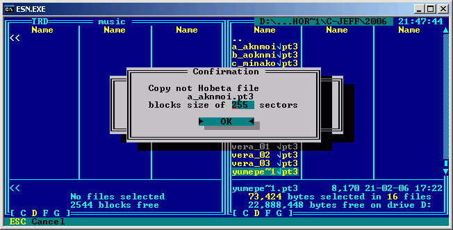 Продвинутый - ZXAmp например. Вот гляди на скришотах как оно проихсодит у меня: (на сообщение про 255 секторов не обращай внимание - жмит ентер) |