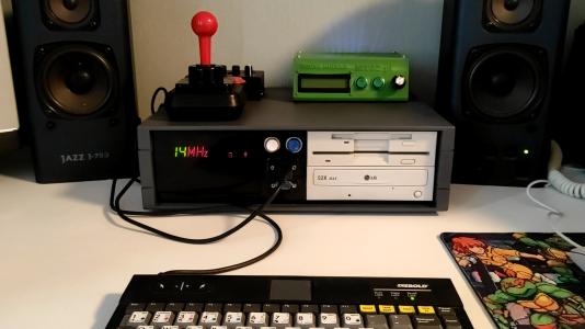 на лицевую панель вывел разъемы под джойстики. По моему получилось очень симпатично и компактно, учитывая установку двух приводов