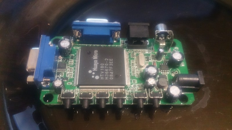 В описании всё очень даже прикольно: 1 вход композита, 1 вход S-Video и байпас вход VGA. Широкая поддержка разрешений. Я уже раскатал губу, что подключу на композит Сегу, на S-Video - Коммодор 64, а байпасом ZX-Evo на свой компактный 9'' vga монитор. Но, гладко было на бумаге. В общем вся суть в том, что этот девайс в упор не понимает цветовое кодирование сигнала ни у Сеги, ни у Денди, ни у Коммодора. Вместо цветной картинки, черно-белая с легким цветным муаром. Коммодор пробовал подключать и по композиту, и по S-Video.