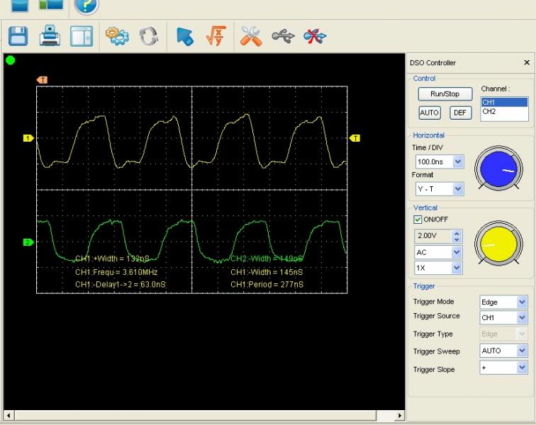 осциллограммы сигналов RAS (желтый) и CAS (зеленый)