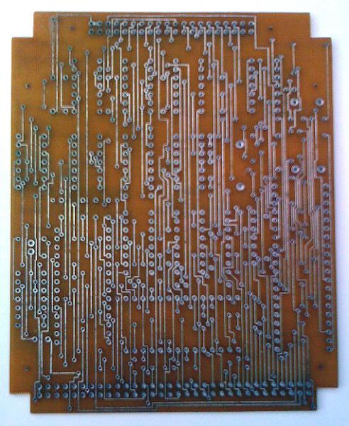 Посмотрел по дорожкам - +12В берётся с разъёма дисковода, а не с разъёма компьютера. Так что нужно другие дорожки посмотреть. Но скорее всего не от БК. Похож на BDI... Если никто не опознает, то туда ей и дорога :) Защиты ВГ93 по питанию не нашёл. Питание на ней разведено плохо, на мой взгляд - неудачная плата. Хотя дорожки тоненькие, переходные отверстия тоньше остальных отверстий - могли бы развести и получше.