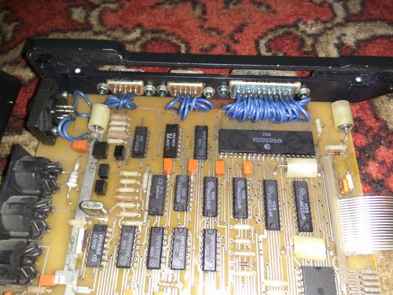 Плата без маски, имела дефекты разводки, но в целом неплохого качества. Интересная особенность - наличие двух портов джойстиков (SJ I и II), выведенных на стандартные 9-пиновые D-sub разъемы (РП15-9). Правда порт принтера был сделан не на DB-25, а на трехрядном РП15-32. Места внутри корпуса не очень много, тем не менее мне встречался "доработанный" Икар, у которого в корпус уместился контроллер дисковода, выведенный на разъем принтера.
