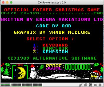 так как сегодня "Адвент", то решил что неплохо было бы сделать какуюнить вариацию старой доброй игрухи для ZX-Spectrum в раскараске под ZX-Poly, выбрал игру Official Father Christmas (1989) поскольку она и рождественская и внутри не имеет сильных графических хитростей (ну отчасти), так что удалось подвергнуть раскраске почти все элементы игры (на картинке наложена нераскрашенная на раскрашенную по диагонали)