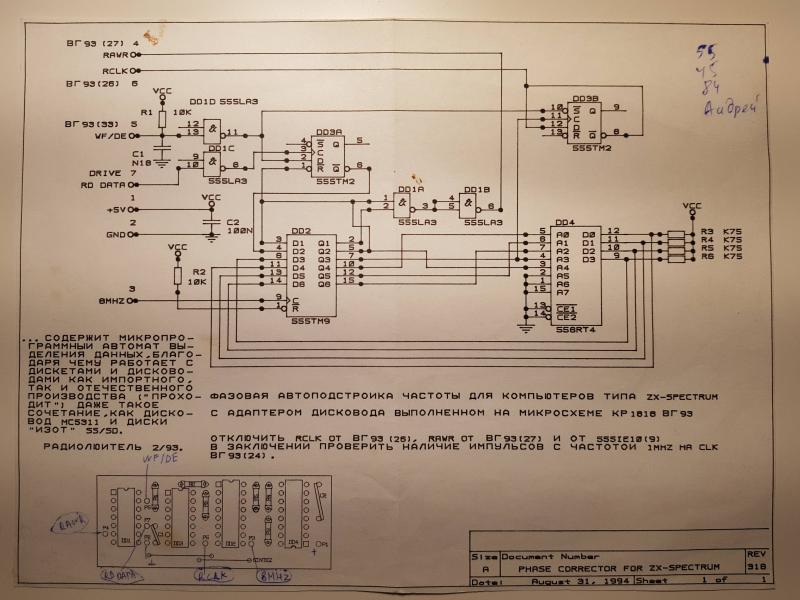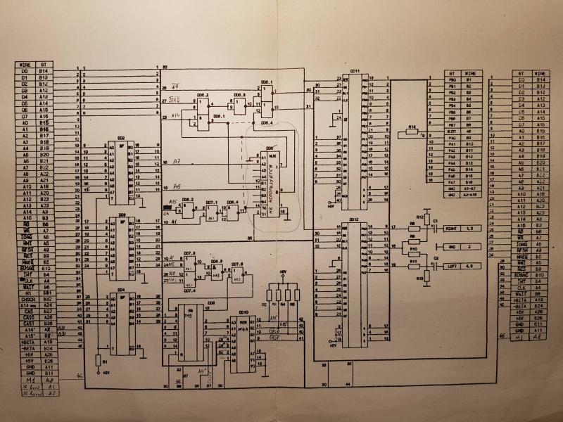 UPDATE: Отсканировал в PDF и выложил по ссылке ниже все старые схемы, которые у меня были: Ленинград 2, Контроллер дисковода к нему, Расширение памяти до 128К и подключение музыкального процессора.