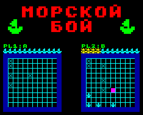 Эта игра одна из вариантов морского боя. Можно играть вдвоём, либо одному против компьютера, клавиши "QAOP, Space" и "67890", соответственно.