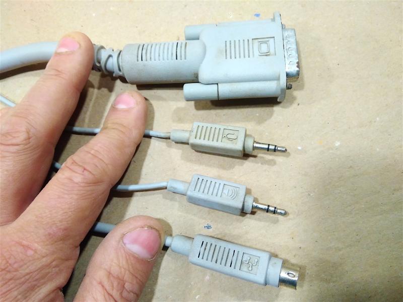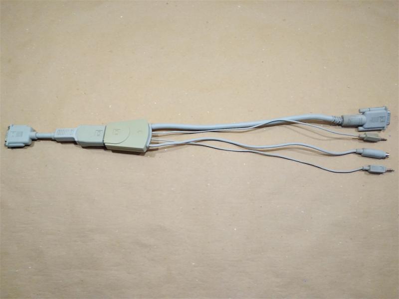 Попался вот такой кабель, с одной стороны стандарный мониторный разьем BD-15 female с другой клавиатурный Mini DIN 4, 2 джека на внешние колонки и микрофон и BD-15 male. Состоит как бы из 2-х частей, первая apple part number 590-0796-A адаптер, вторая 590-0793-A разветлитель. Что за кабель и как он применялся? Заранее благодарен! :Apple: