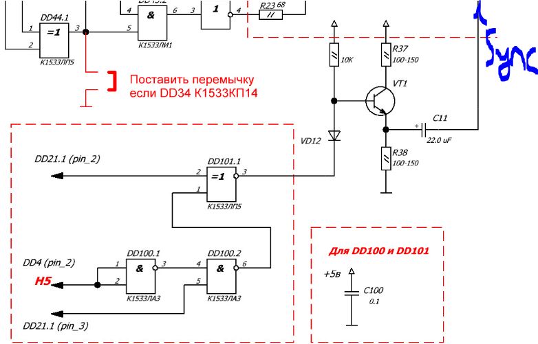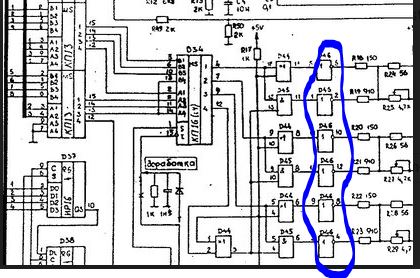 У меня D46 не установлена вообще, вместо нее перемычки, а логика сохранена подав на D44 вместо +5в, землю - работает как инверсия.