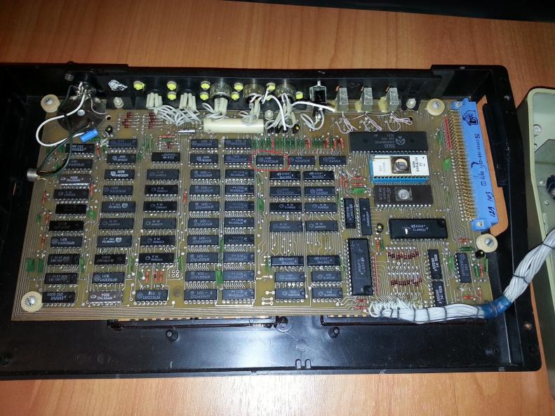 Года 4 назад включал её, получив на экране мусор. При разборе оказалось, что ПЗУ состоит из двух микросхем: К573РФ4Б и ST M2764AFI, причем первая на панельке. Вытаскивание её из панельки и возврат назад позволило загрузить начальное сообщение 1991 Sinclair Research Ltd и даже загрузить пару игрушек. Видеовыход с Дельты шел простым композитным кабелем, в черно-белом виде, без каких-либо модификаций прямо на карту видеозахвата на РС. Однако в определенный момент картинка на экране инвертировалась, а одна из микросхем в районе гнезда видеовыхода (КР1533ЛН1), минуту назад гревшаяся как печка, начала остывать. С тех пор компьютер стоял в ожидании того, когда я соберусь с духом заняться им серьезно, и вчера это время, наконец, пришло.