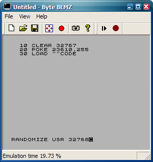 Работает на компьютере Байт и в эмуляторе EMU 1.01 для Байта (Byte EMU.rar):