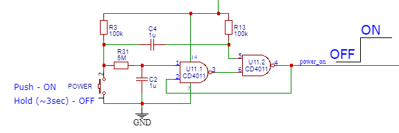 И вроде бы работает в виде макета, и даже почти правильно, при первом запуске молчит, включается, выключается удержанием (мелочи по отключению то при удержании больше N cекунд, то при отпускании после удержания N cек опустим), но на практике выключенный прибор включается от каждого чиха, его заводит даже просто прикосновение пальцем к "земле" устройства.
