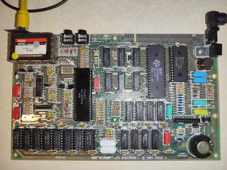 Прежде чем задать свой вопрос, хотел бы поделиться с вами историей, как я стал счастливым обладателем ZX-Spectrum 48+. Достался он мне очень не просто. Возможно, мой опыт будет кому-то полезен и позволит избежать моих ошибок. Оригинального спека ранее я в глаза никогда не видел и никакого представления, что и как у него подключается и как работает не имел. Сначала заказал за 20-ку деревянных через Авито у одного продавца с хорошим рейтингом Спектрум+ с доставкой из Москвы (сам живу в Питере). Спросил исправен ли комп, есть ли нюансы. Продавец написал, что всё окей, “приставка” (именно это определение он использовал применительно к Спектруму, что явно говорит об уровне этого продавца) огонь, можете смело брать. Через 3 дня пришёл комп. Комплектация обрадовала: оригинальная картонная коробка с пенопластом в хорошем состоянии, сам комп (внешне не бит, не крашен), интерфейс кэмпстона, джойстик кьюикшот 2 с переключателем автоогня, кабель ВЧ для подключения к ТВ, кабеля для подключения мафона, руководство по эксплуатации, очень массивный оригинальный блок питания 1400. Подключаю к телевизору по ВЧ, включаю автопоиск, пытаюсь поймать сигнал - тв вообще ни за что не может зацепиться. Тыкаюсь так и сяк, никакого результата. Проверил напругу на блоке - всё ОК, выдаёт 12 Вольт. Вообще он считается блоком питания на 9 Вольт, но так это самый обыкновенный выпрямитель, напряжение не стабилизировано и без нагрузки напряжение на выходе значительно выше номинала. Такие блоки не следует включать в сеть без нагрузки, а затем, не разрядив конденсаторы, втыкать в комп. Связываюсь тут же с продавцом, говорю, что изображения нет, и когда нажимаешь кнопки нет звука из динамика на плате, что по идеи должно быть в любом случае, если плата исправна. Тот говорит недавно подключал, в игрушки играл, а звук у него через антенну шёл, советует попробовать ещё раз настроить через антенный вход. Пытаюсь найти сигнал вручную, никакого результата. Наконец, вскрываю корпус, вижу что сигнал с платы идёт в обход модулятора ВЧ через конденсатор сразу на выход. Подключаю к телевизору через НЧ. Есть изображение! Только ничего не работает - на экране помойка, но видно, что есть бордюр. Ещё немного покопался, оказалось, что на плате стоит ПЗУ 32К и переключатель половин ПЗУ. С помощью программатора считываю прошивку - в одной половине нестандартный Бейсик с вводом инструкций по буквам, в другой - тест (это я выяснил загрузив прошивку в эмулятор). Переключаю ПЗУ на тест - из динамиков слышится несколько гудков, на экране по-прежнему ничего не разобрать. Снова пишу продавцу, спрашиваю, как он мог слышать звук через тв, если компьютера выдаётся только видео композит? Продаван теперь говорит, что включал комп год назад и сейчас ничего не помнит. Предлагает отдать плату в ремонт. 1,5 тыщи за ремонт готов компенсировать. Интересно как он так просто посчитал стоимость ремонта? Меня что-то перспектива ремонта с неизвестным прогнозом (а вдруг там ULA слетела, которую ничем не заменишь) не радует. Снова на Авито ищу предложения на мать для Спека. И таких предложений нашлось целых два, но от одного человека. Стоимость платы - 8 косарей. Пишу продавану, что пусть он плату сам чинит, а мне компенсирует стоимость новой платы. К счастью, продавец согласился, и, после отправки материнки ему обратно, деньги я получил. Теперь пы