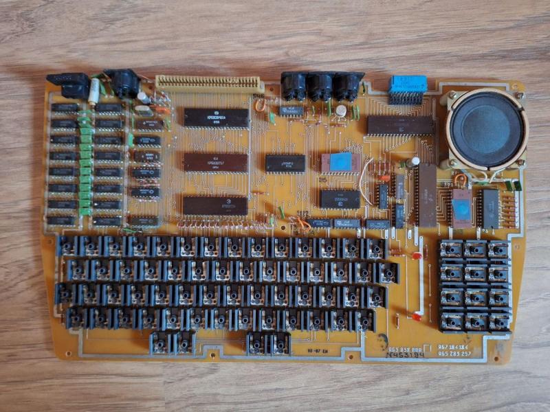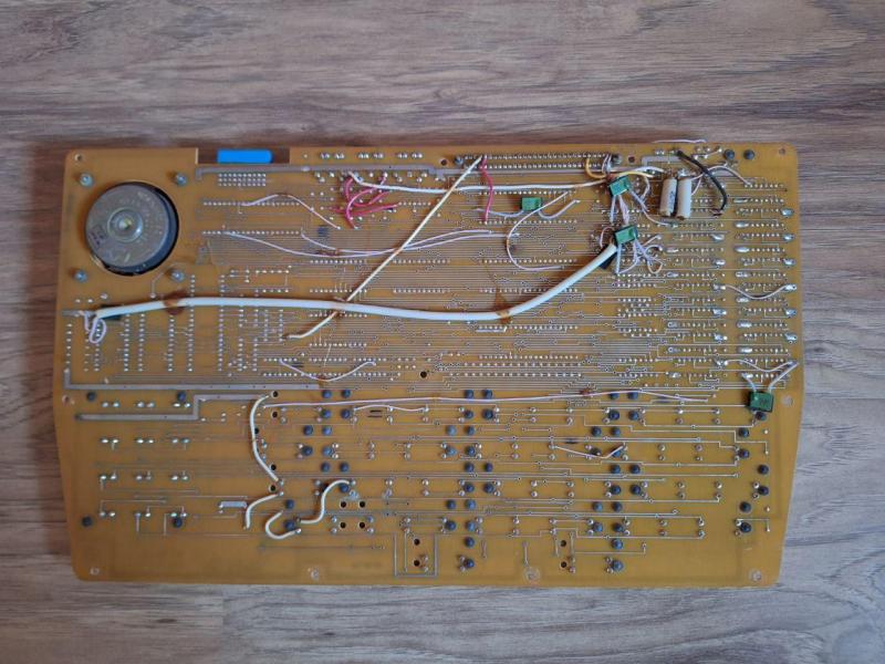 Уже дома разобрав, увидел девственно нетронутую, хотя тоже достаточно грязую, плату. Кмки и драгосодержащие микросхемы были на месте, так что шанс поднять машину из небытия определенно есть. Тщательно вымыл корпус, продул и почистил плату. Корпусные детали натер восстановителем пластика. И перед мной компьютер, которым вроде даже и не пользовались. Кнопки все на месте, пластик не затертый. Плата конечно испохаблена еще на заводе, вся в резах и проводных допайках – фирменный стиль Лианозово.