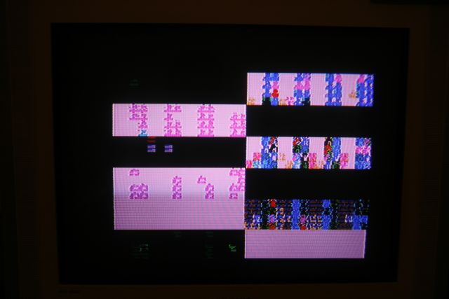 когда пзу втыкаю и включаю питалово такое ощущение что проц вроде бы как сбрасывается, пытается чегото там прочитать из ПЗУ и все, замер. Или может просто на видео ничего не выводится. На третей картинке пара цветных квадратиков. А так как правило - просто черный экран.