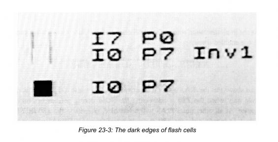 То есть на самом деле черные пиксели в фирменном спектруме чуть короче "пустышек". Доя понимания эффекта нужно осознать что спекки рисует единичку как точку, нолик как отсутствие точки, и ворочание своими мозгами тоже как отсутствие точки, как нолик. Если поменять атрибут местами, то будут белые пиксели чуть короче "пустышек", что начинает выглядеть как черные пиксели длиннее "пустышек", то есть спекки начинает мозгами ворочать уже на единичках. На спекки пиксель скажем так не вполне квадратный. Связано это с тем что схема асинхронная и тайминги в ней подногялись задержками а не триггерами со стробом.