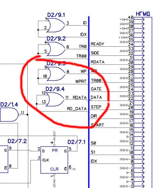 В схеме КНГМД в первом и в этом посте http://zx-pk.ru/threads/27462-sborka...l=1#post909903 ошибочно подключены выходые сигналы дисковода WP и RDATA к выходам элементов 8 выв. D2/9.3 и 11выв. D2/9.4 соответственно. А входы этих элементов к входным сигналам WRPT вывод 36 D2/4 и выв.12 D2/7.2 соответствено. Нумерация сохранена.