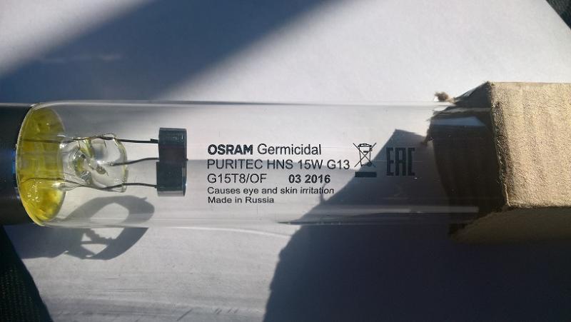 В итоге стал искать бактерицидную лампу, но в маленьких городах это всегда сложно, хорошо недавно открылся небольшой магазин "Русский свет" (если не путаю) в итоге там смог за 320руб. купить лампу OSRAM.