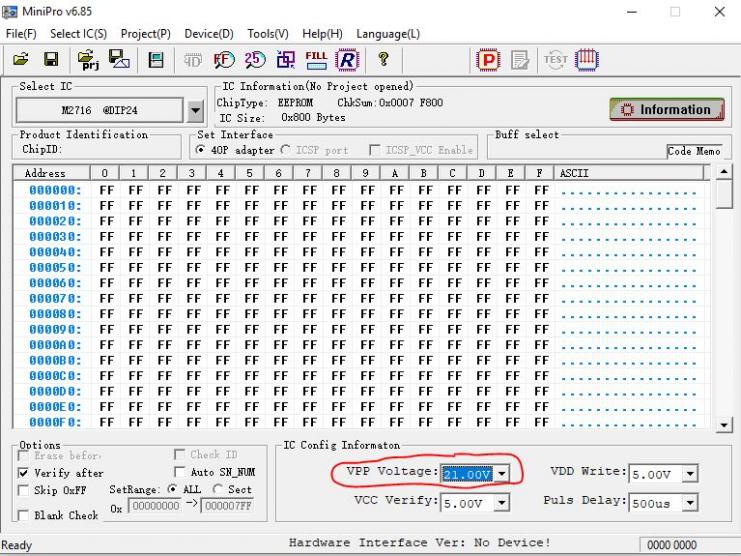 Кстати, наступил на грабли с РФ5 - купил спецом для антуража, а TL866 максимум Vpp=18V выдаёт зараза. Можно конечно 21 ножку заизолировать, и внешнее питание подать.
