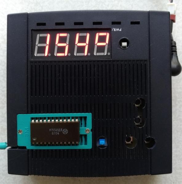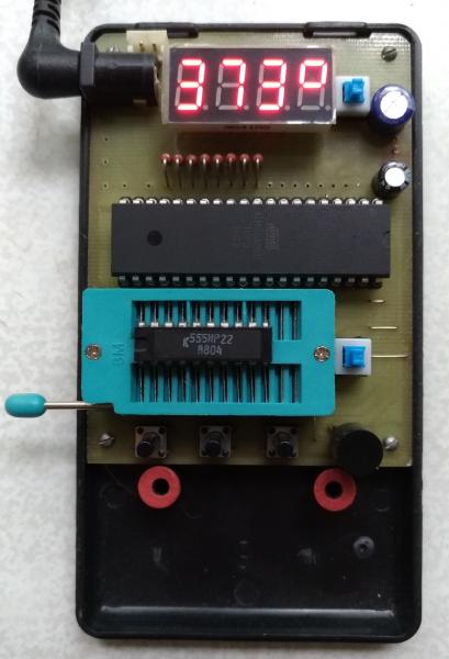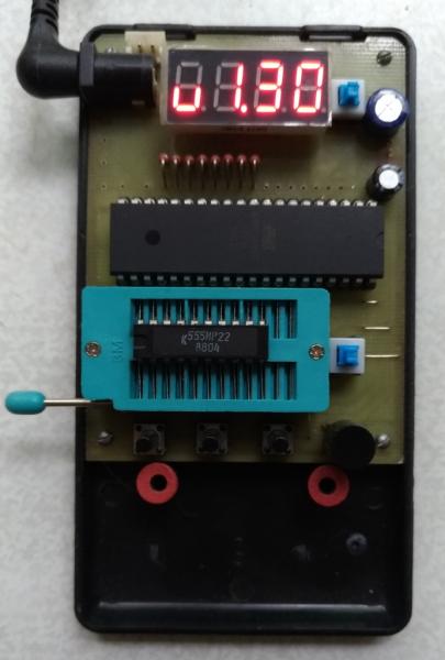 Есть какая-то проблема с индикацией - разная яркость индикаторов. Надо, как советовали, поставить прошивку v.1.30. Т.к. тестер собран на монтажке, желательно заменить панельку на 24 ножки для проверки 155 серии. Тогда нужно будет установить переключатель и транзистор для проверки этих микросхем. Привожу фото показаний с новой прошивкой. Плата разведена под корпус приборов 830 серии.