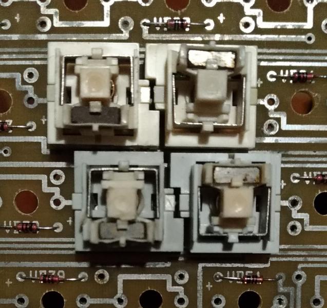 Позвольте немного поправить - между кнопками и рядами кнопок по вертикали есть зазор в 1мм. Быстрое фото - плата от ЕС1840 с вставленными кнопками. :cool:
