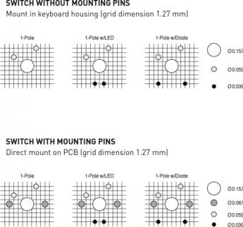 Если проектировать точную копию платы (чтобы она легко установилась в корпус Вектора), важны и крепёжные отверстия, и размеры смещения рядов кнопок по горизонтали. Ещё важный размер - смещение рядов по горизонтали относительно друг друга. Расстояние между кнопками и между рядами по вертикали - 20мм, при высоте кнопки 19мм получается зазор в 1мм. Проектировал плату клавиатуры на этих кнопках для Спектрума, как раз использовал эти цифры.