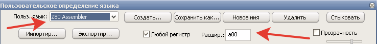 а во-вторых, опять же меню "Синтксисы -> Задать свой синтксис", там выбрать асм Z80 и поменять (или добавить) расширение.
