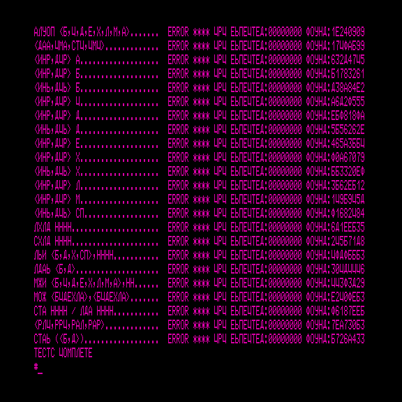 С тестами недокументированных флагов 1821ВМ85 предлагаю пойти по простому пути и использовать 8080EXER.