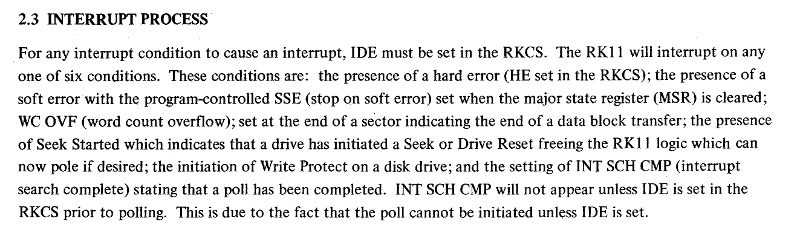 Вполне вероятно. Вероятно также, что документация писалась впрок (как у DEC обычно и было). Так или иначе, но факт остается фактом: overlapped seek (если конечно это вообще о том) сам DEC не использовал для RK05, хотя судя по написанному он возможен (причем в данном случае прерывания имеют место быть).