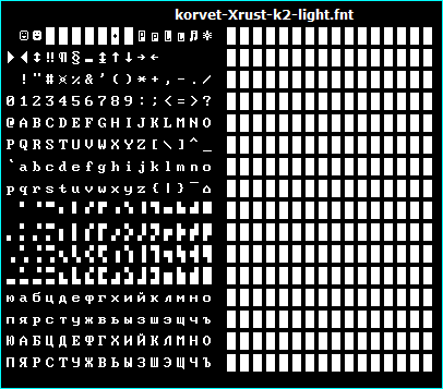4) Прошивка Знакогенератора: Вложение 70781 (первая половинка от стандартного шрифта Корвета korvet2.fnt, вторая половинка - битая)