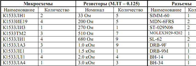 Переоформил перечень элементов для закупки :) В архиве doc и pdf файлы, один лист А4. Выглядит вот так: (кусочек)