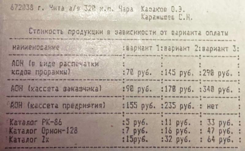 Я тут нашёл каталог лето-осень 1992 года с играми для РК, рассылаемыми из г.Читы - интересно кто-то у этих ребят что-то покупал в те времена?