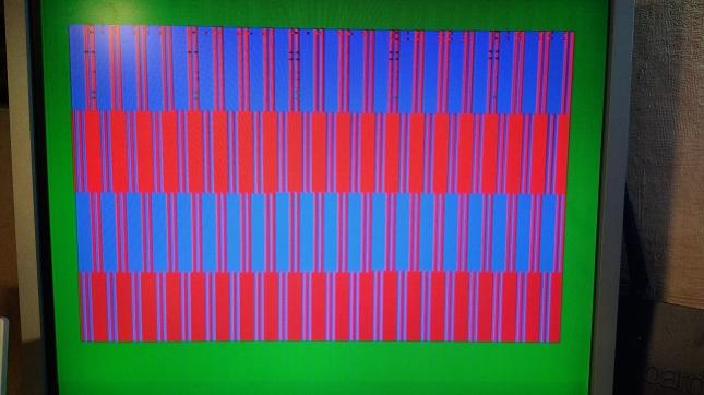 Ни один тест не взлетает пока. Картинка красивая и устойчивая, он сразу теперь выходит в высокое разрешение, можно проводками переключать разрешение и символьный/графический режим экрана. Что с процессором - не пойму.