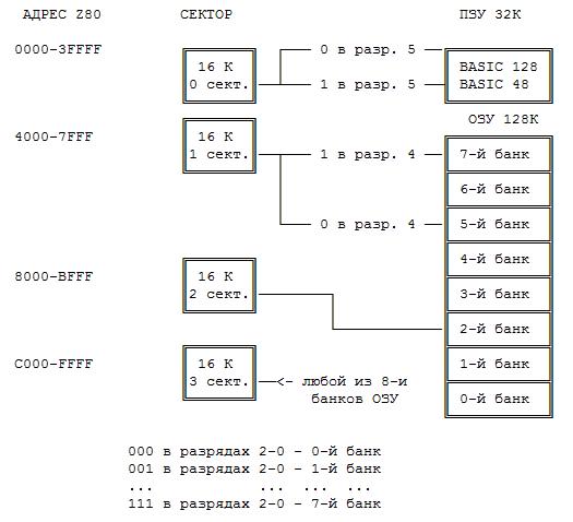 Пялюсь на принцип организации памяти 128к и ни взуб ногой...