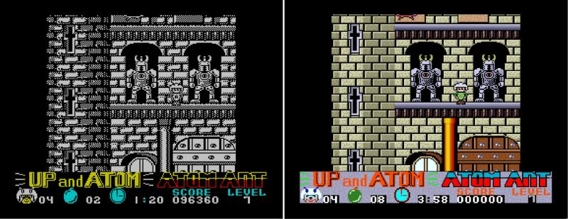 Начал было раскрашивать игрушку Hydrofool, но столкнулся с тем, что раскрасска совсем по своей идее не будет соответсвовать. Просто там спрайты выводятся с разным цветом, которые зависят от локации. Т.е. пиксели одни, а цвет меняется в зависимости от локации. Можно привести каким-то цветам - но потеряется фишка. В версии спектрум меняется цвет всей локации. В версии Comodore меняется всё рандомно. На одной локации аквалангист зелёный, на другой синий.
