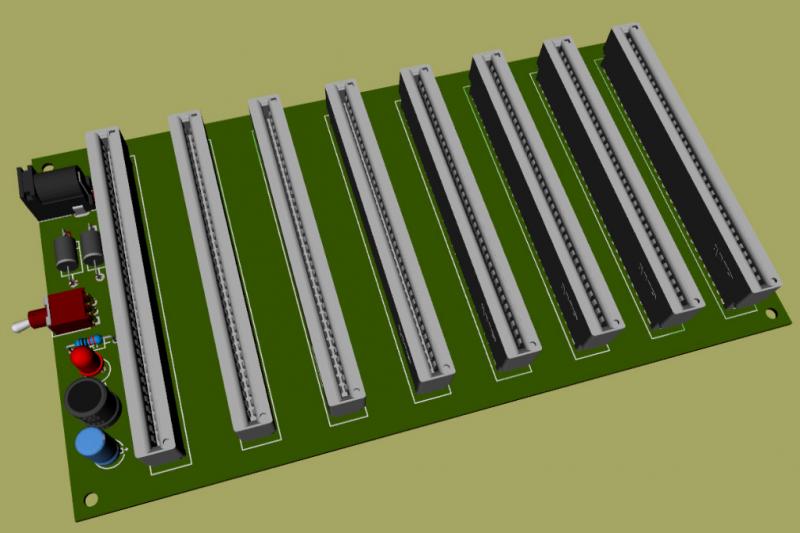 Взял с запасом, но можно и уменьшить. Т.к. я изначально предполагал использовать 5 модулей: процессорный, память, дешифратор, видео и порты, то три оставил для расширения.