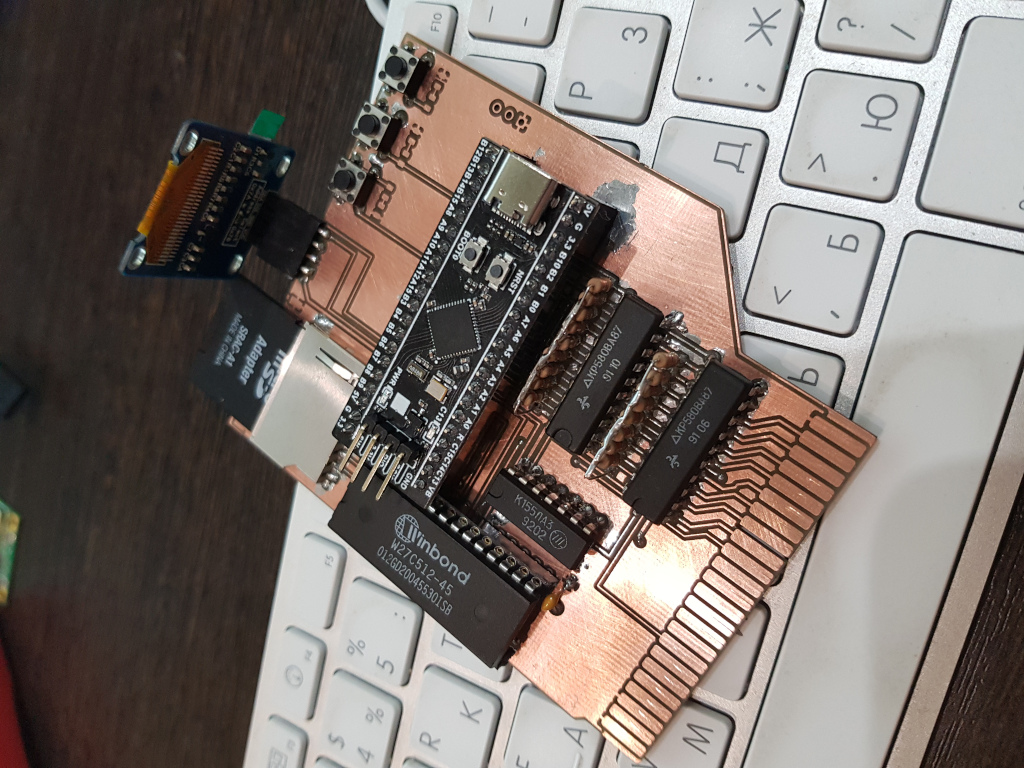 Пока мысль такая: Контроллер при старте читает корень СД-карты и имена файлов записывает в каталог ДСК-имиджа, который будет примонтирован в 3 слот. Также я хочу сделать на этом же диске 1 настоящий файл - монтировщик, который можно запустить в УКНЦ, который передаст команду на монтирование в порт 177130 используя неиспользуемые биты, а в 177132 номер диска и номер файла. Как-то так.