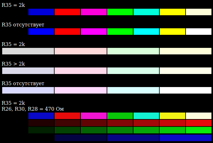 на самом деле, сейчас этих резисторов нет. и они действительно чисто для понижения к стандартному видеосигналу. могу сегодня допаять их (так или иначе собирался это сделать) и показать, что получится, но я уверен, что будет тоже самое.