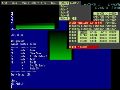 Общая картина видна: на эмуляторе цвет гуляет, и видны градиенты внутри гадиента (каждые 8 цветов). На реальной машине цвет идеально серый (на фото синюшность из-за неправильного баланса белого), плавно возрастающий (за исключением разлома в середине, но это может быть из-за резисторов на ЦАП).