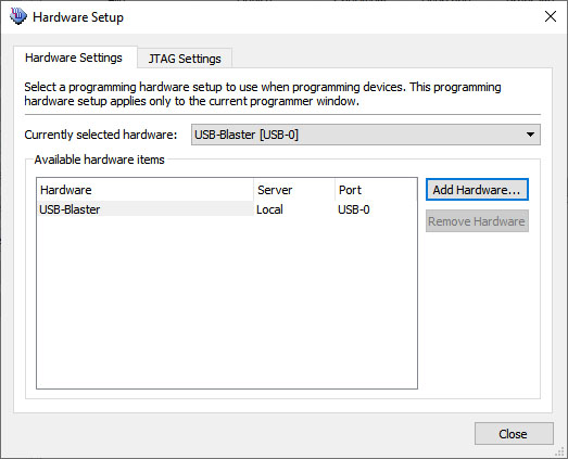Зашёл в Hardware Setup, там выбрал свой USB Blaster: