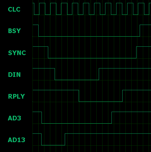 А дальше процессор отпускает DIN, память отпускает RPLY, процессор отпускает SYNC и BSY.