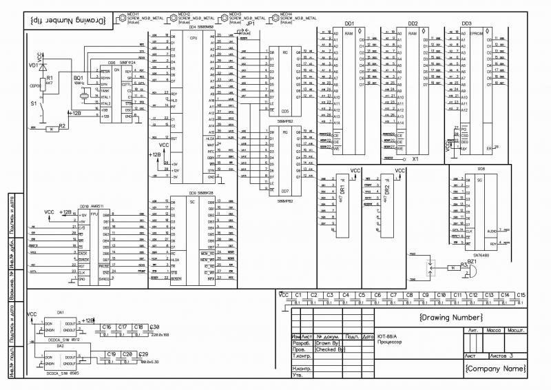 Для начала - схема включения процессора, памяти и сопроцессора. Остальное позже. Не готово ещё.
