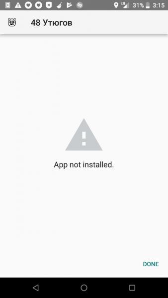 нет. вначале стандартный запрос на установку, затем полоска бежит-бежит, а потом "Приложение не установлено" и кнопочка одна "Готово".